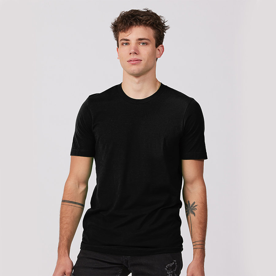 - 4.3 oz./yd²., 100% combed ringspun USA premium cotton fine jersey, 30 singles