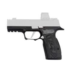 Icarus Precision A.C.E. SXG, Grip Module, Fits Sig P365 X-Macro/XL, Steel Construction, Nitride Finish, Black, Hogue Black G10 Grip Panels 365_SXG_MACRO_NON_BLK_HGBL