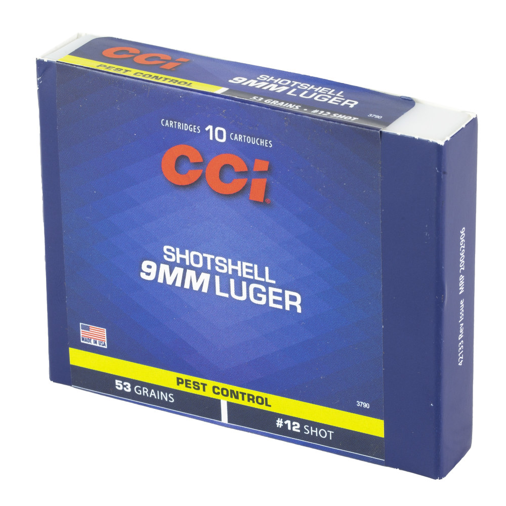 CCI Ammunition Shotshell, 9MM, 53 Grain, Shotshell, #12 Shot Size, 10 Round Box 3790