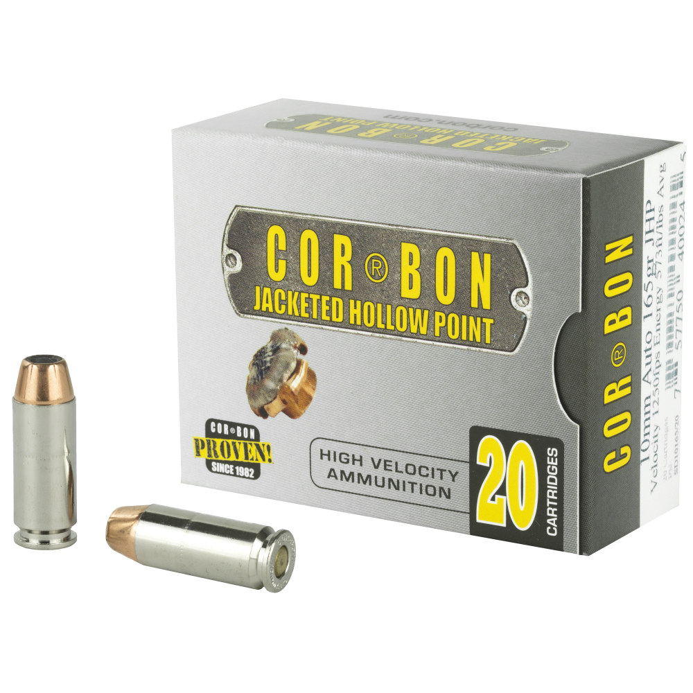 Corbon Ammo Self Defense, 10MM, 165 Grain, Jacketed Hollow Point, 20 Round Box 10165