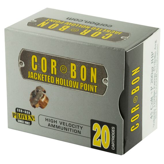 Corbon Ammo Self Defense, 45LC+P, 200 Grain, Jacketed Hollow Point, 20 Round Box 45C200