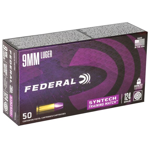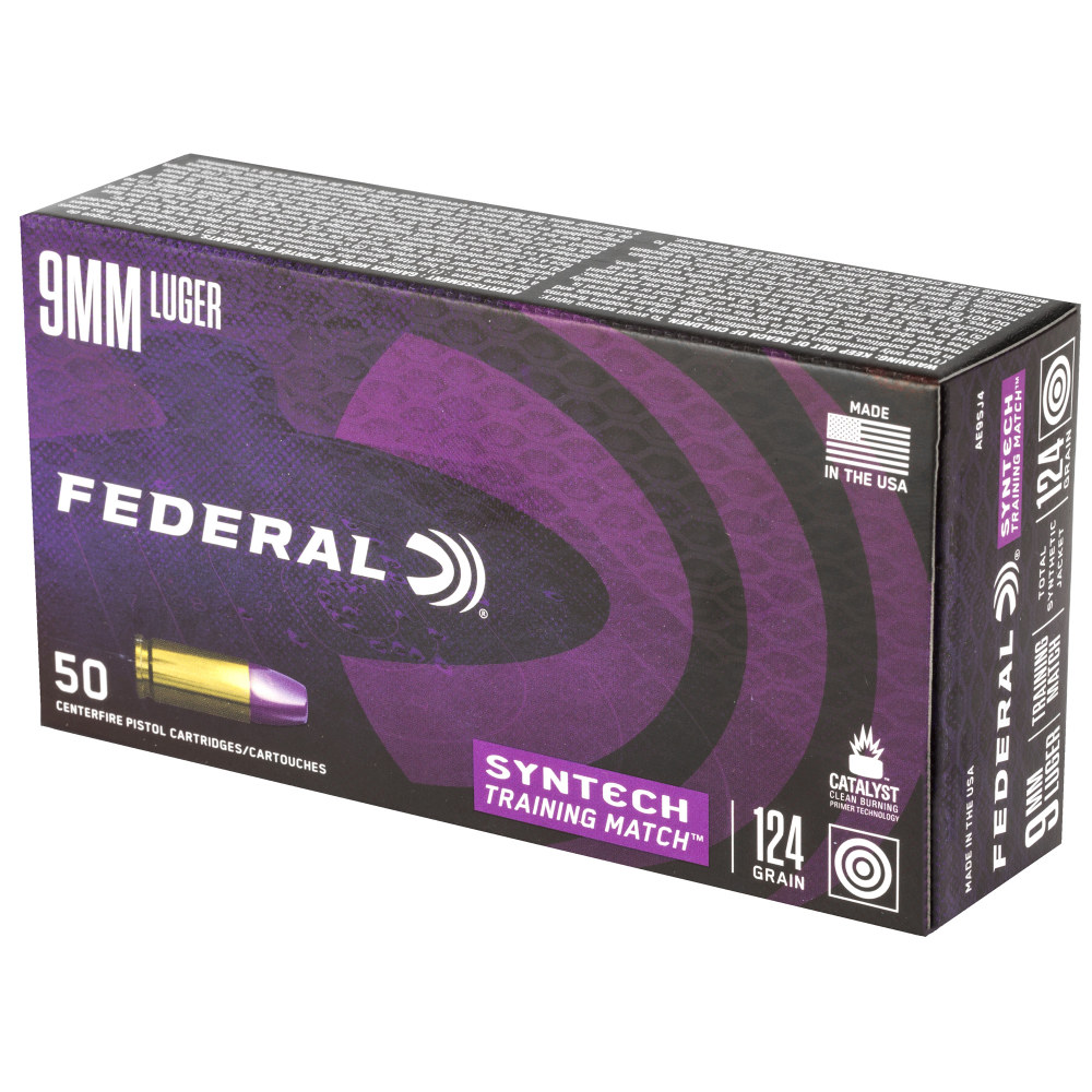 Federal Syntech Training Match, 9MM, 124 Grain, Total Synthetic Jacket, 50 Round Box AE9SJ4