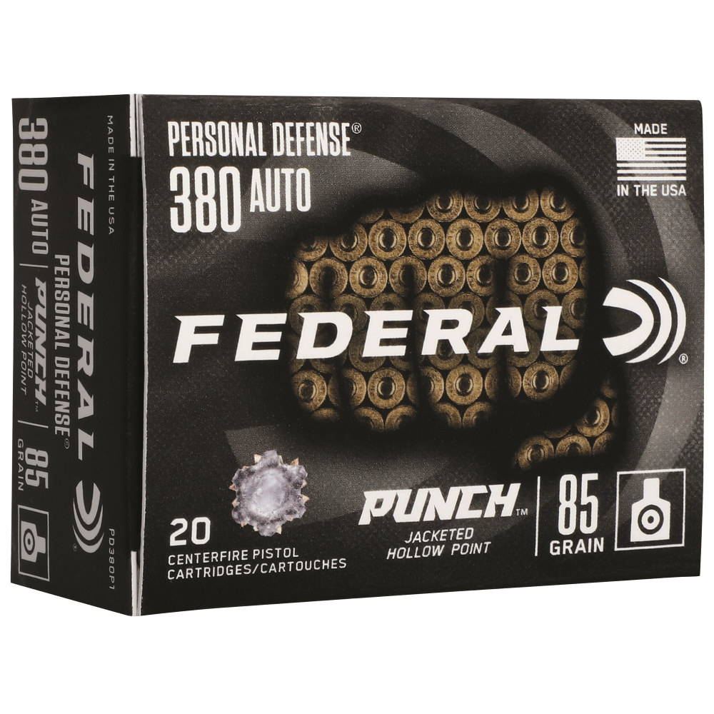 Federal Premium, Punch, 380 ACP, 85Gr, Jacketed Hollow Point, 20 Round Box PD380P1