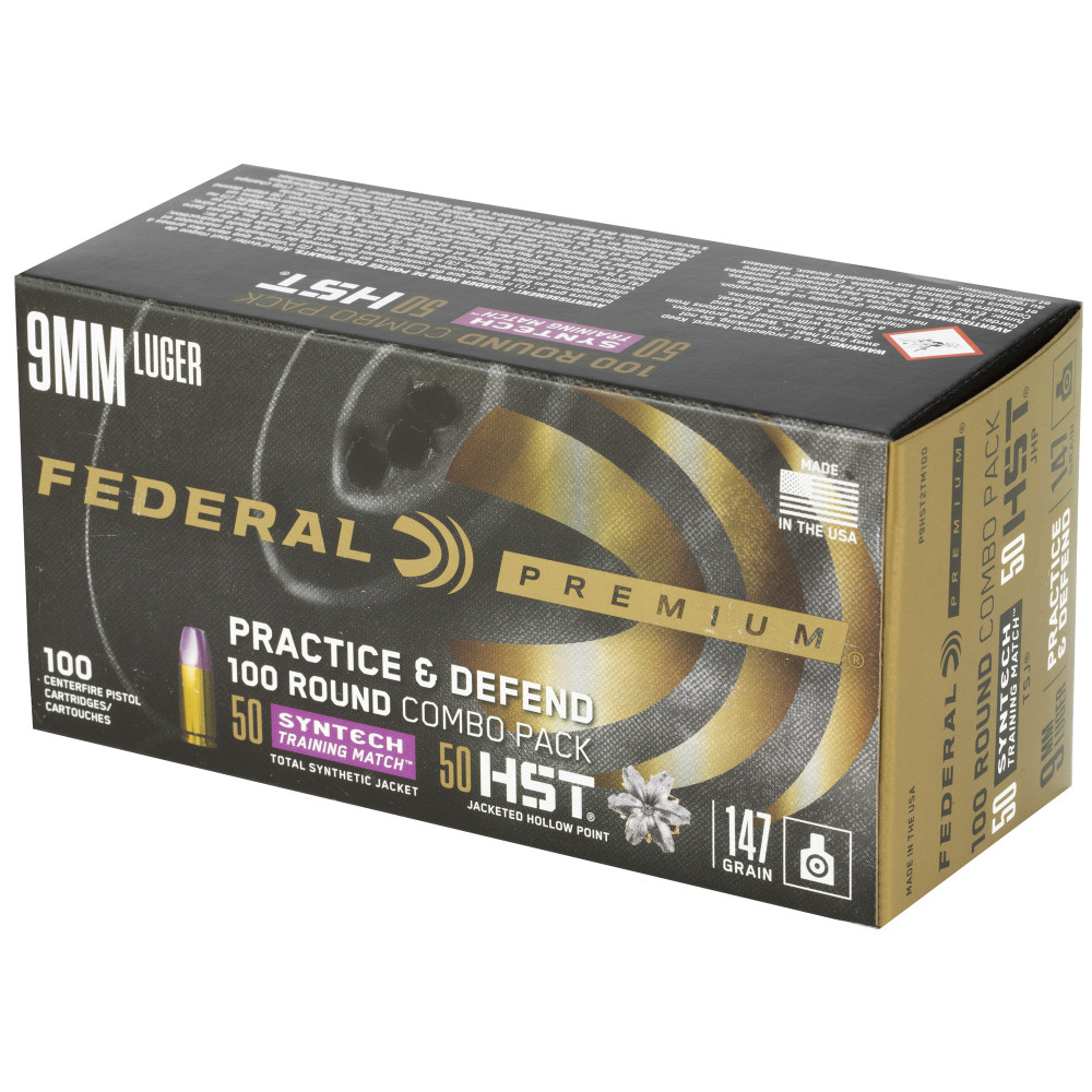 Federal Premium, Practice & Defend, HST, Syntech, 9MM, 147Gr, JHP/TSJ, 100 Round Box P9HST2TM100