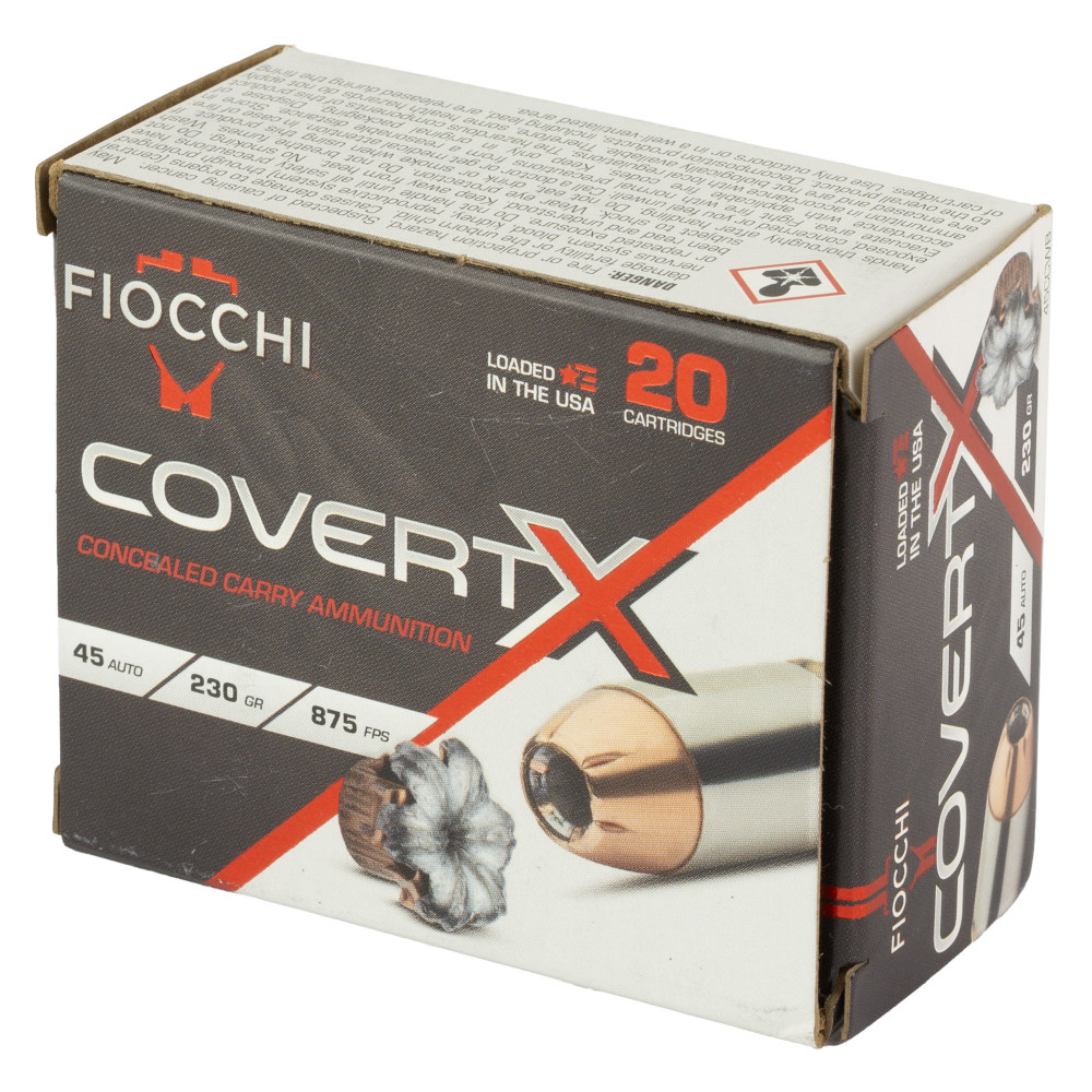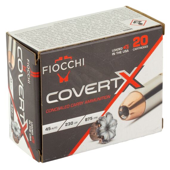 Fiocchi Ammunition COVERT X, 45 ACP, 230 Grain, Jacketed Hollow Point, 20 Round Box 45CCWB
