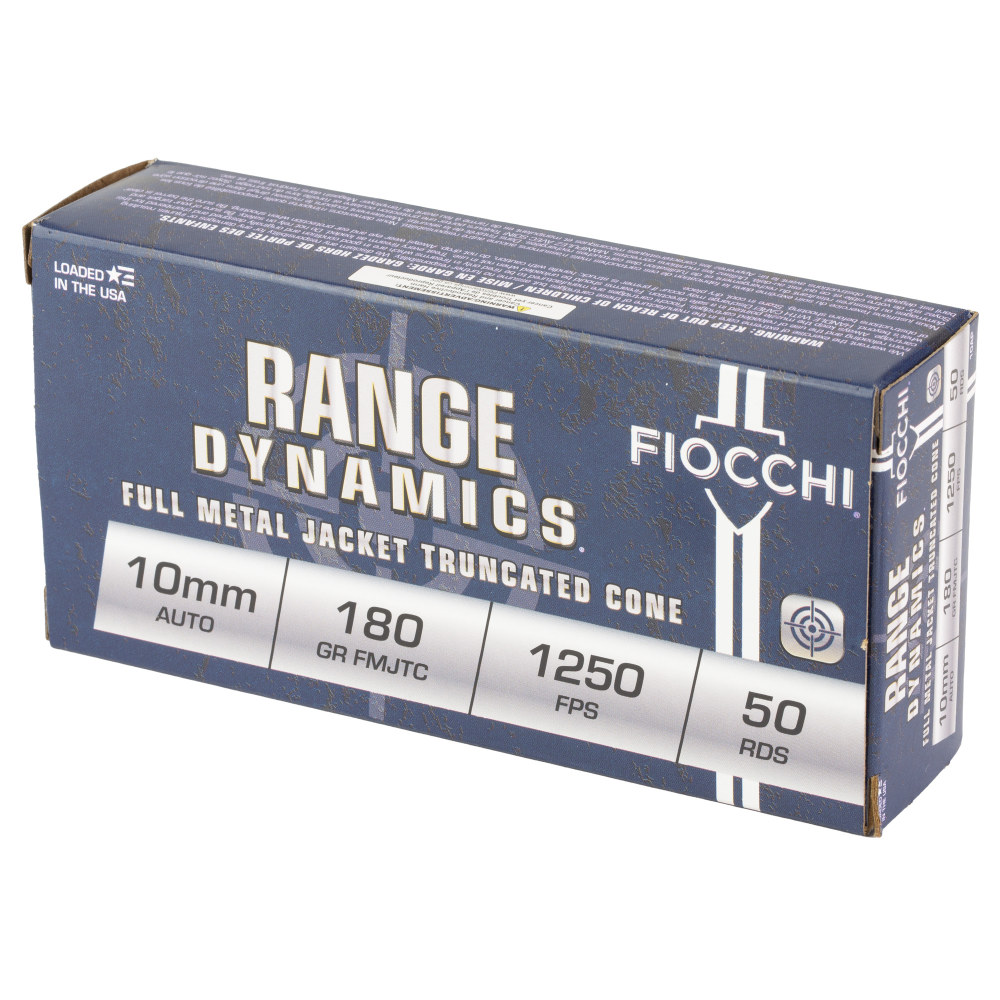 Fiocchi Ammunition Range Dynamics, 10MM, 180 Grain, Full Metal Jacket Truncated Cone, 50 Round Box 10AP