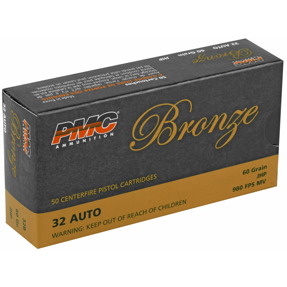 PMC Ammunition Bronze, 32ACP, 60 Grain, Jacketed Hollow Point, 50 Round Box 32B