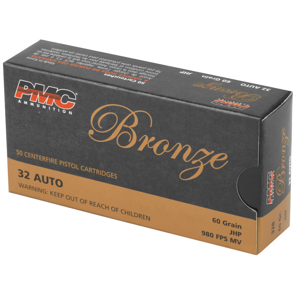 PMC Ammunition Bronze, 32ACP, 60 Grain, Jacketed Hollow Point, 50 Round Box 32B