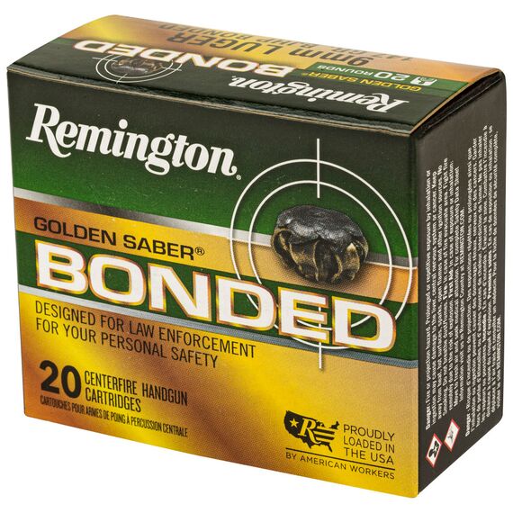 Remington Golden Saber, 9MM, 147 Grain, Brass Jacketed Hollow Point Bonded, 20 Round Box 29343