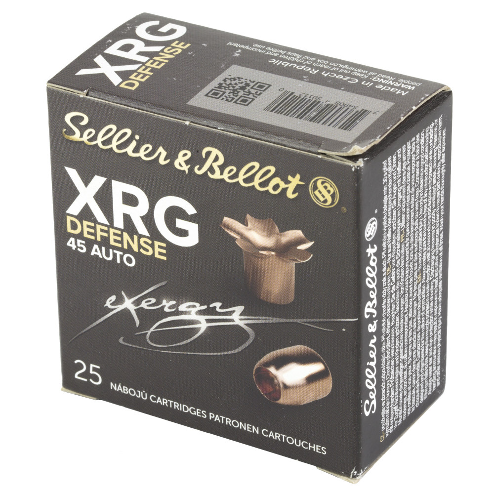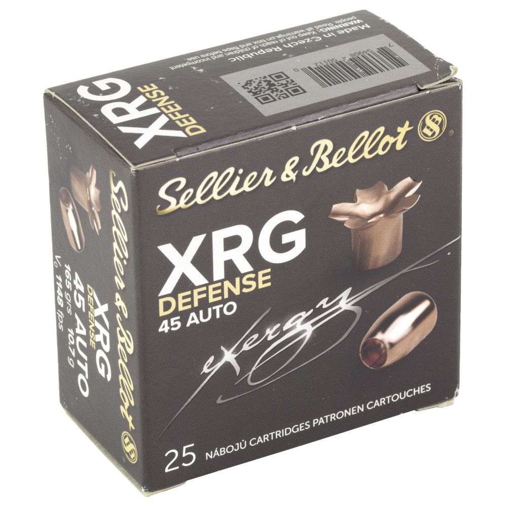 Sellier & Bellot XRG, 45 ACP, 165 Grain, Jacketed Hollow Point, 25 Round Box SB45XA
