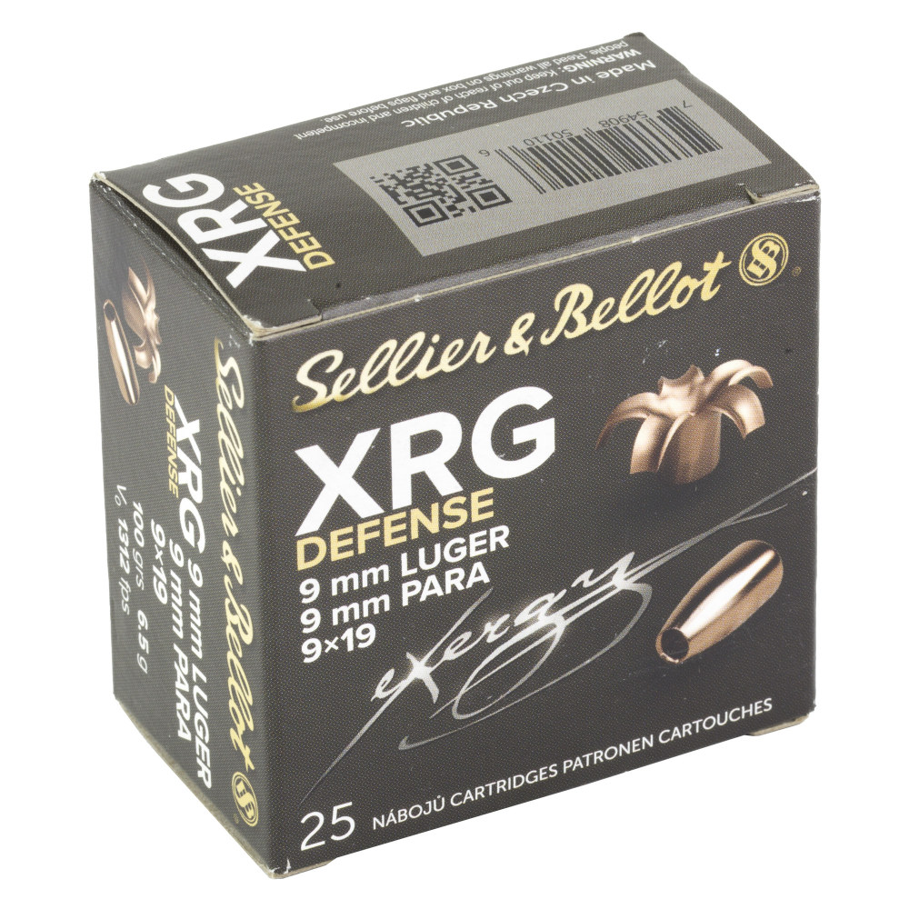 Sellier & Bellot XRG, 9MM, 100 Grain, Jacketed Hollow Point, 25 Round Box SB9XA