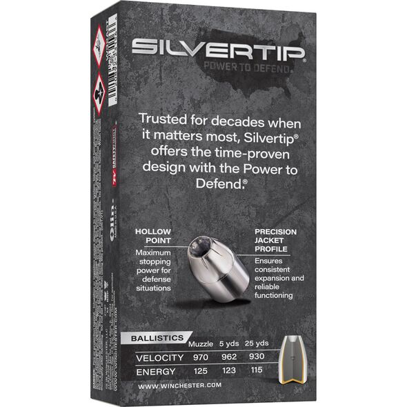 Winchester Ammunition SILVERTIP, 32 Auto, 60 Grain, Jacketed Hollow Point, 50 Round Box W32AST