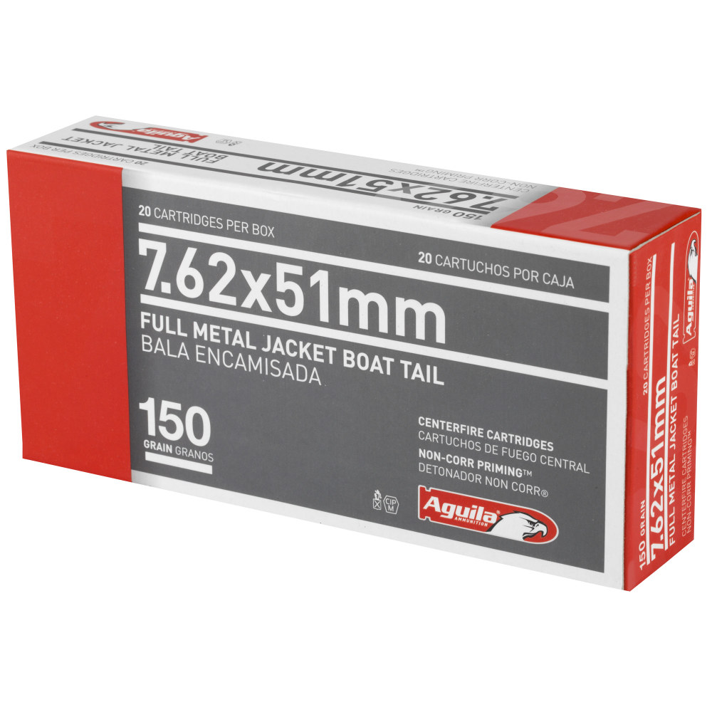 Aguila Ammunition Rifle, 762X51, 150 Grain, Full Metal Jacket Boat Tail, 20 Round Box 1E762110