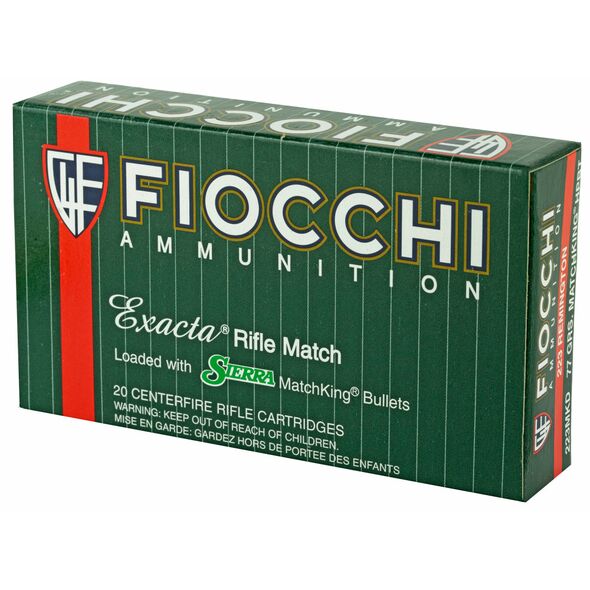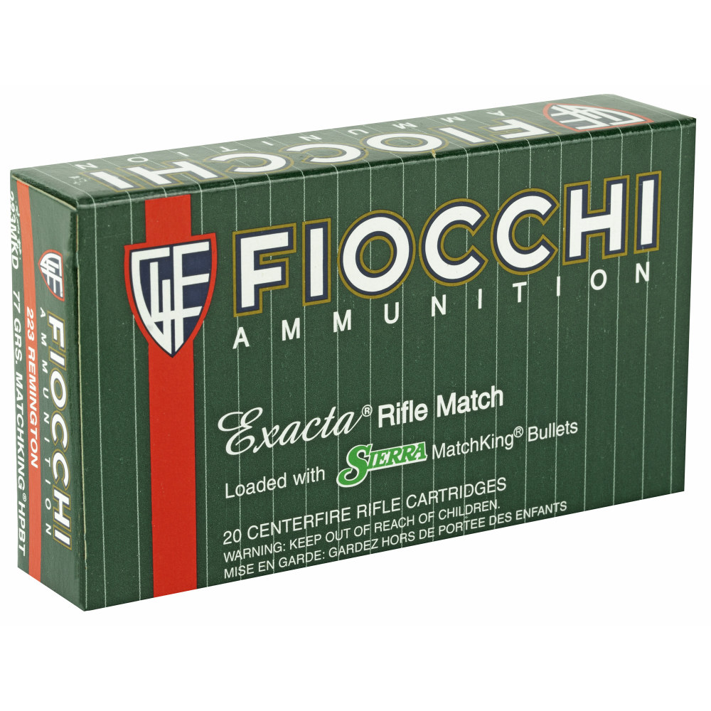 Fiocchi Ammunition Rifle, 223 Remington, 77 Grain, Hollow Point Boat Tail Match King, 20 Round Box 223MKD