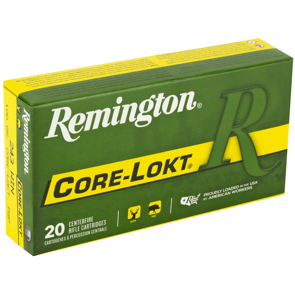 Remington Core Lokt, 243 Winchester, 100 Grain, Pointed Soft Point, 20 Round Box R27802