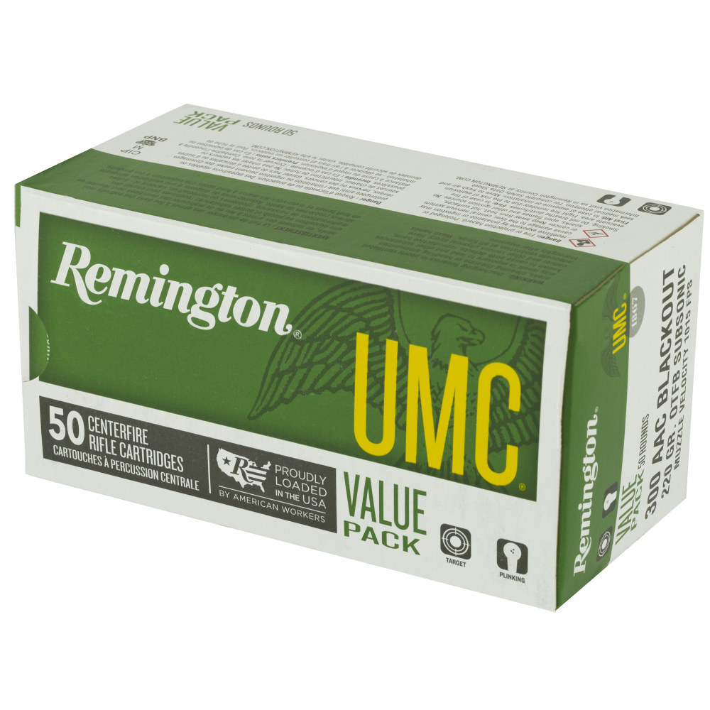 Remington UMC, 300 Blackout, 220 Grain, Open Tip Flat Base, 50 Round Box 24026