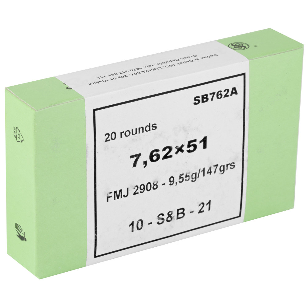 Sellier & Bellot Rifle, 762NATO, 147 Grain, Full Metal Jacket, 20 Round Box SB762A