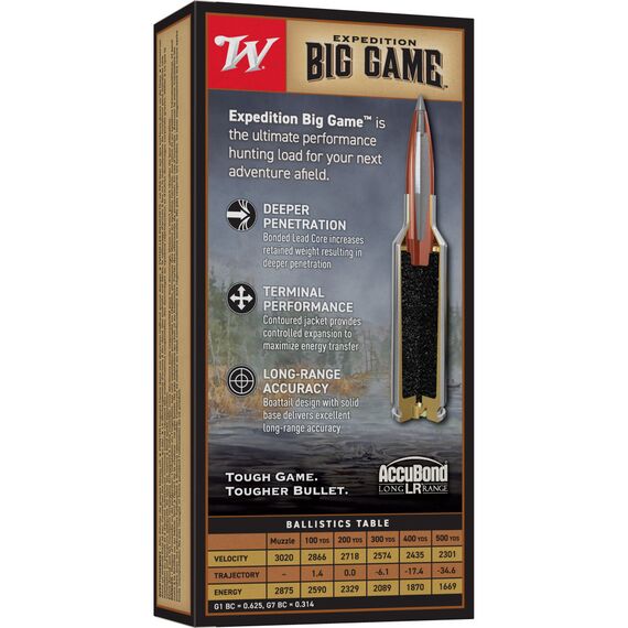 Winchester Ammunition Big Game Long Range, 6.5 PRC, 142Gr, AccuBond LR, 20 Round Box S65PLR