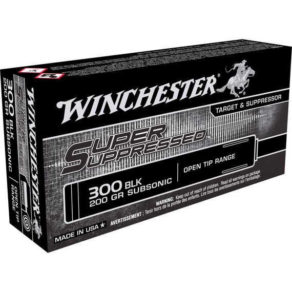 Winchester Ammunition Super Suppressed, 300 Blackout, 200 Grain, Open Tip, 20 Round Box SUP300BLK