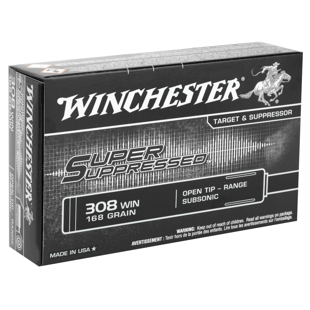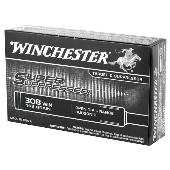 Winchester Ammunition Super Suppressed, 308 Win, 168 Grain, Open Tip, 20 Round Box SUP308