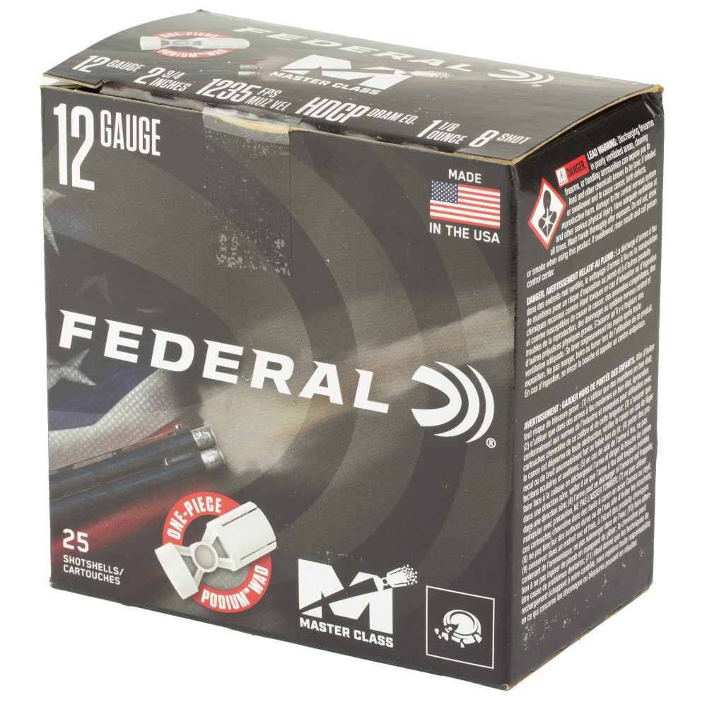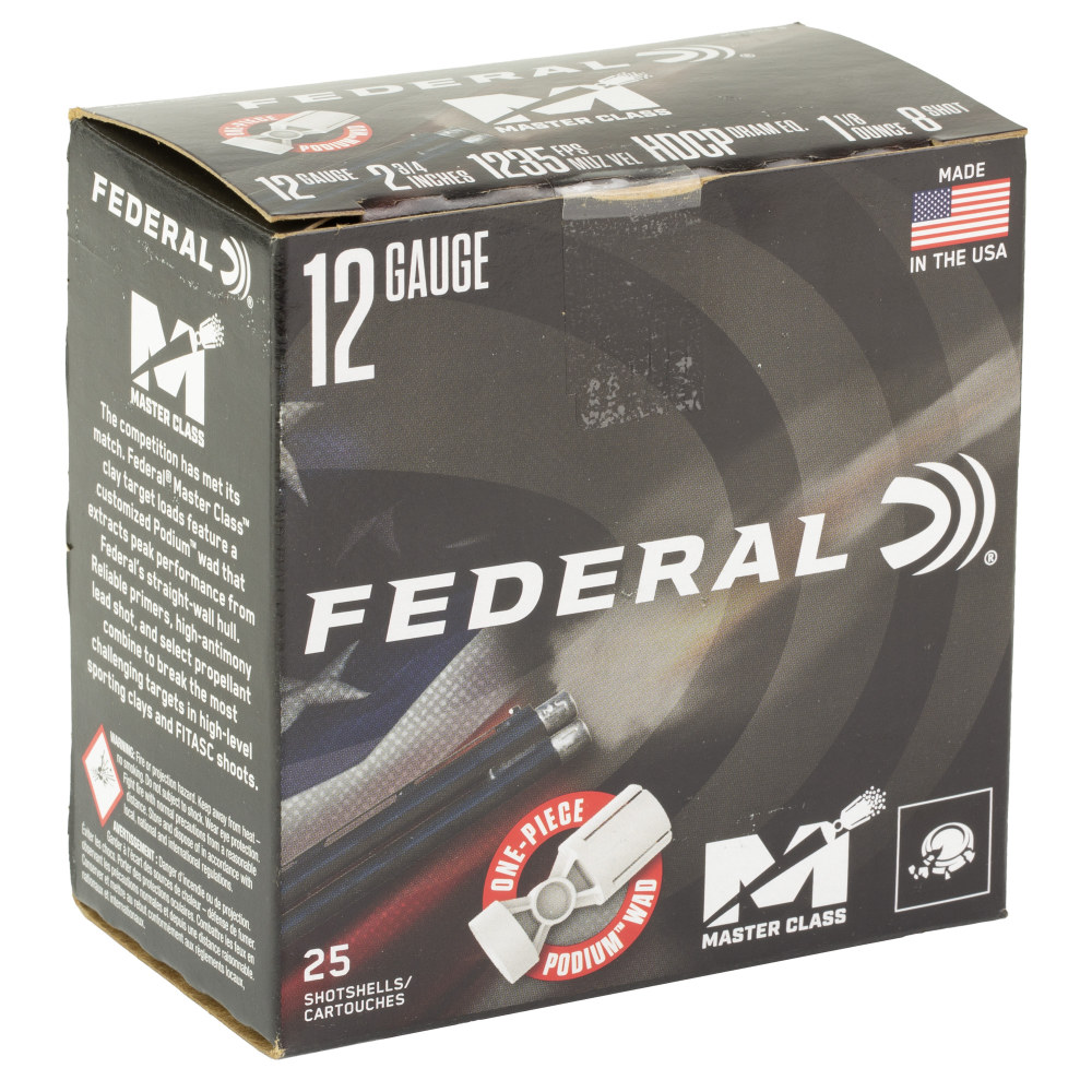 Federal Master Class, 12 Gauge, 2.75", #8, 1 1/8 oz, Shotshell, 25 Round Box MC12HC8