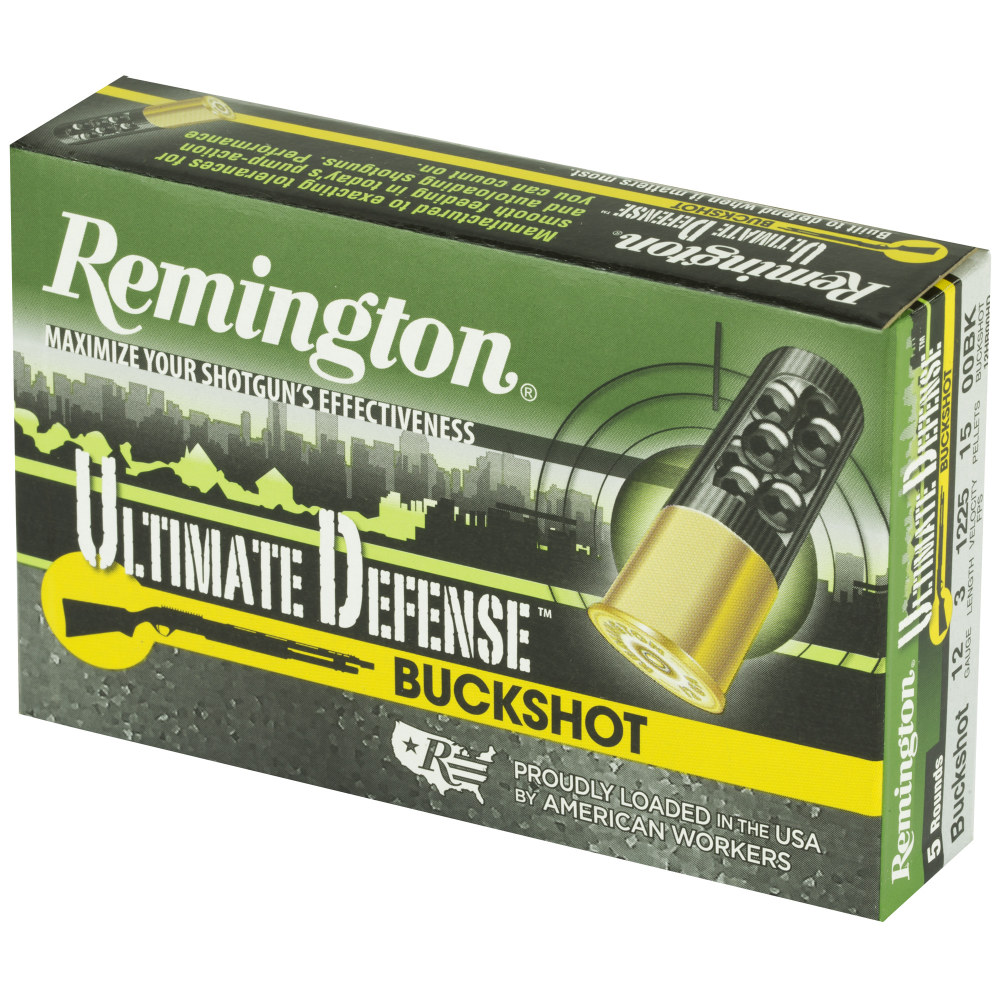 Remington Ultimate Defense Buckshot, 12 Gauge 3", 00 Buck Shotshell, 15 Pellets, 5 Round Box r20633