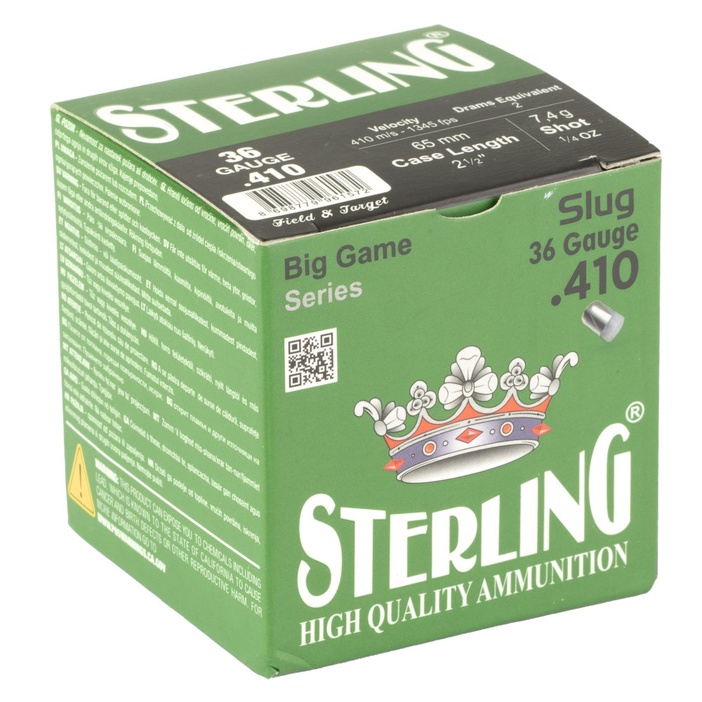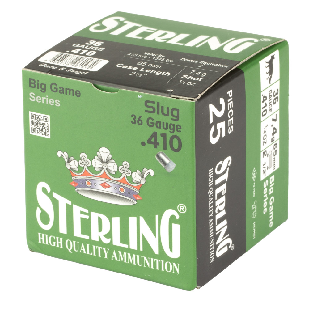 Sterling Big Game Series, 410 Gauge 2.5", 10 Grain, 1/4 oz, Rifled Slug, 25 Round Box 8698779961572