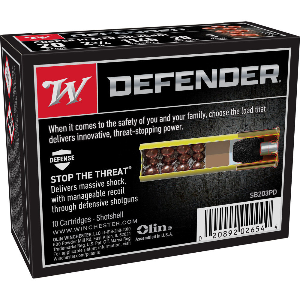 Winchester Ammunition Defender, 20 Gauge 2.75", #3 Buck, Buckshot, 10 Round Box SB203PD