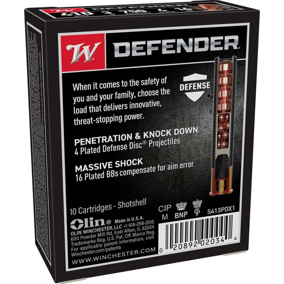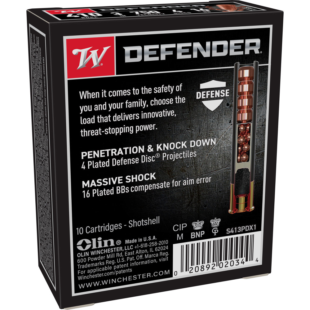 Winchester Ammunition Defender, Supreme Elite, 410 Gauge, 3" Buckshot, 3 Defense Discs, 12 BB Pellets, 10 Round Box S413PDX1