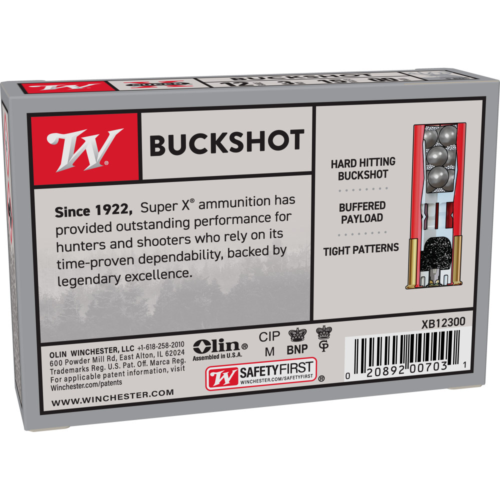 Winchester Ammunition Super-X, 12 Gauge, 3", 00 Buck, Buckshot, 15 Pellets,5 Round Box XB12300