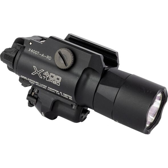 Surefire X400 Turbo, Weaponlight w/Laser, Fits Pistol and Picatinny, 650 Lumens, 66,000 Candela, Red Laser, Matte Finish, Black X400T-A-RD