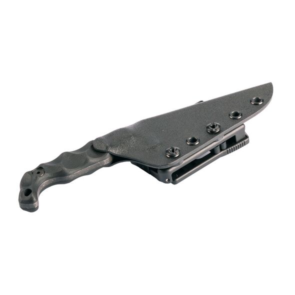 Stroup Knives BRAVO 5, Fixed Blade Knife, 3.5" Clip Point Blade, 1095 High Carbon Steel, 7.75" Overall Length, Acid Etched Finish, Black, G10 Handle, Includes Sheath B5-B-G10
