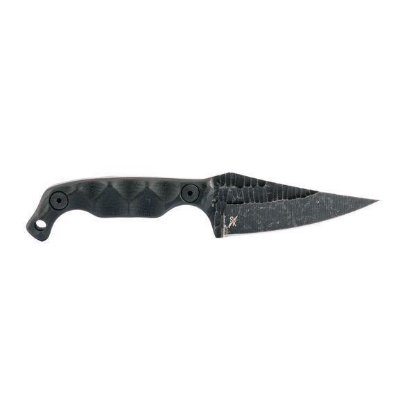 Stroup Knives Mini 1, Fixed Blade Knife, 3" Clip Point Blade, 1095 High Carbon Steel, 6.75" Overall Length, Acid Etched Finish, Black, G10 Handle, Includes Sheath MINI1-B-G10
