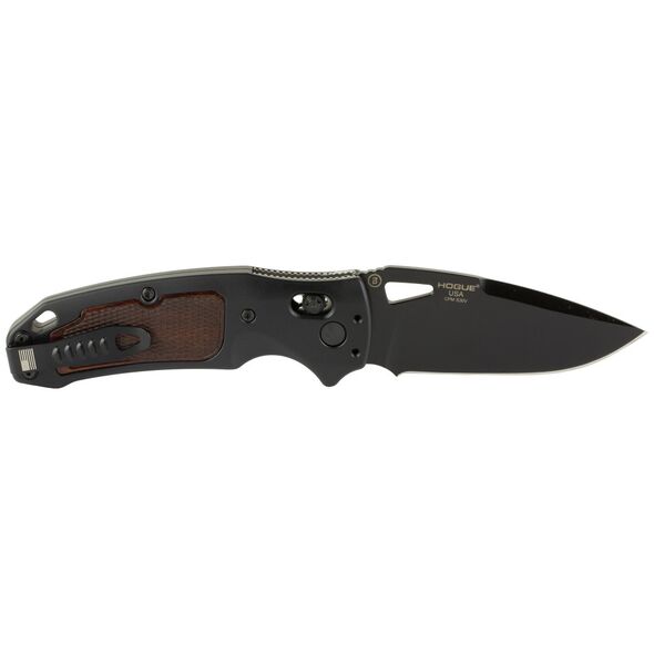 Hogue SIG K320 AXG Classic, Folding Knife, Cerakote Finish, Black, Drop Point, 3.5" Blade Length, CPM-S30 V Blade Steel, Plain Edge, ABLE Lock, Heritage Walnut Inserts with Checkered Texture 36377
