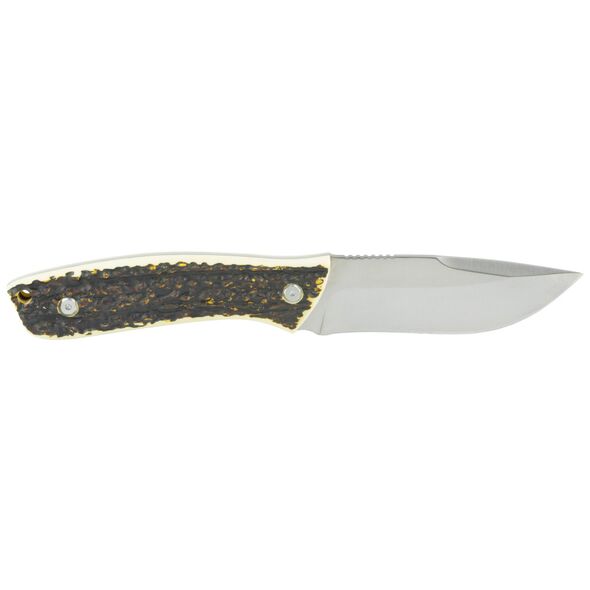 Camillus Western Crosstrail, Fixed Blade Knife, Plain Edge, Faux Stag Handle, Satin Finish, Silver Blade, 4.25" Blade Length, 9" Overall Length, 420 Stainless Steel Blade, Includes Nylon Sheath CAM-19246