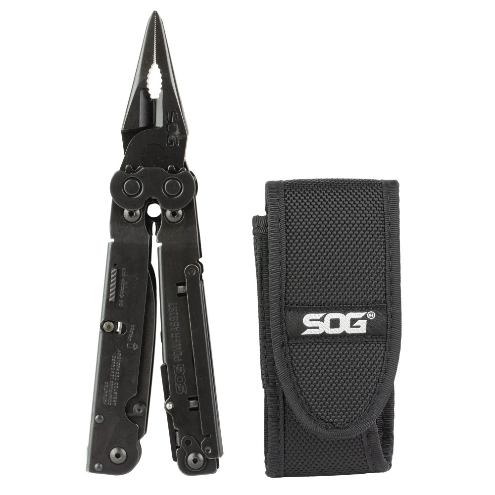 SOG Knives & Tools PowerAssist Tool, 16 Tool Multi-Tool, 420 Stainless Steel, Black Oxide Finish, Black, Includes Nylon Sheath SOG-B66N-CP