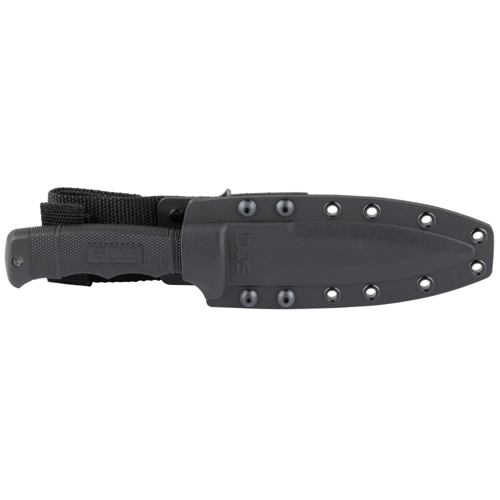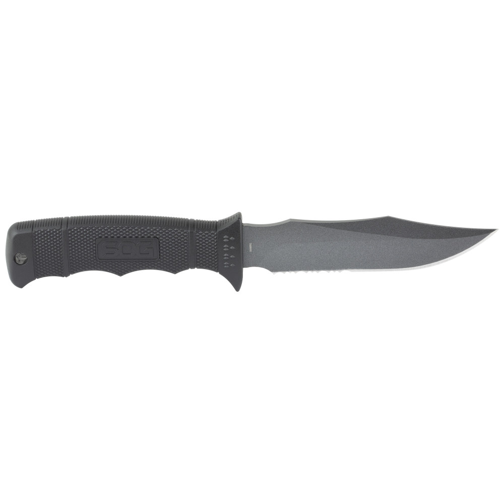 SOG Knives & Tools Seal Pup, Fixed Blade Knife, 4.75" Partially Serrated, Clip Point, Black Glass Reinforced Nylon Handle, AUS-8 Steel, Hardcased Finish, Black, Includes Kydex Sheath SOG-M37K