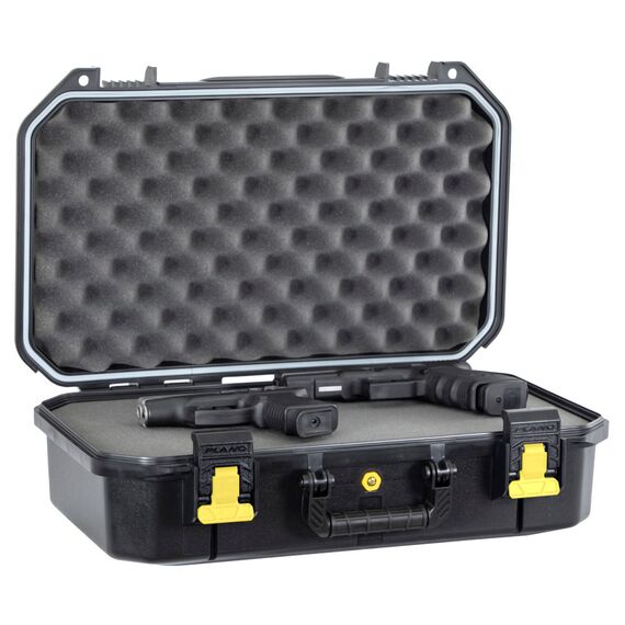 Plano All Weather 2, 2 Pistol Case, 18"x10"x5", Pluck to Fit Foam, Black and Yellow PLA118XL