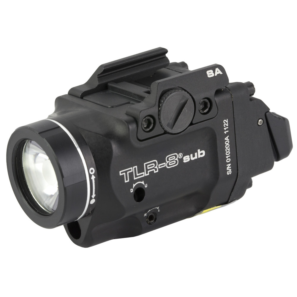 Streamlight Streamlight TLR-8 Sub, White LED with Red Laser, Fits Springfield Hellcat, 500 Lumens, Anodized Finish, Black, Includes (1) CR123a Battery, Low and High Switches 69419