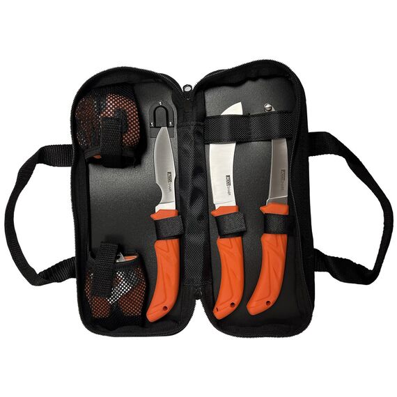 AccuSharp 6-Piece Game Processing Kit, Fixed Blade Knives, Orange Non-Slip Grip, Plain Edge, Stainless Steel Blades, Includes Nylon Carry Case 738C