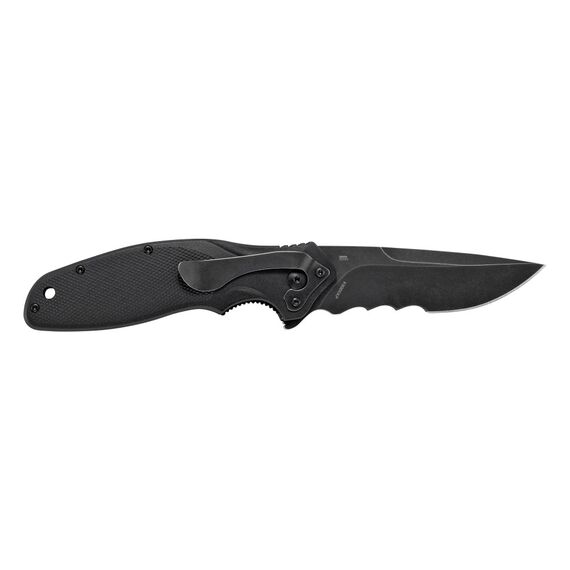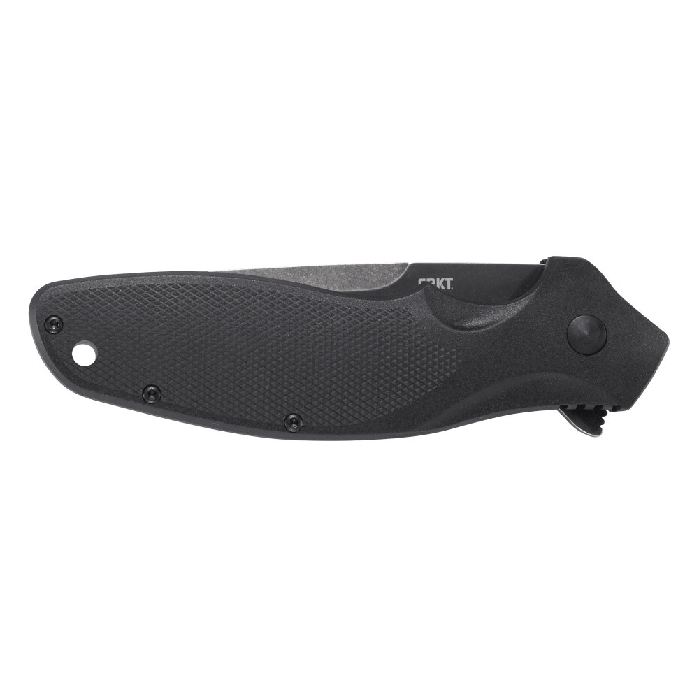 Columbia River Knife & Tool Shenanigan w/ Veff Serrations, 3.35" Drop Point Blade, Stonewashed Finish, 1.4116 Stainless Steel, Assisted, IKBS, Black Glass-Reinforced Nylon Handle, Black Blade K800KKP