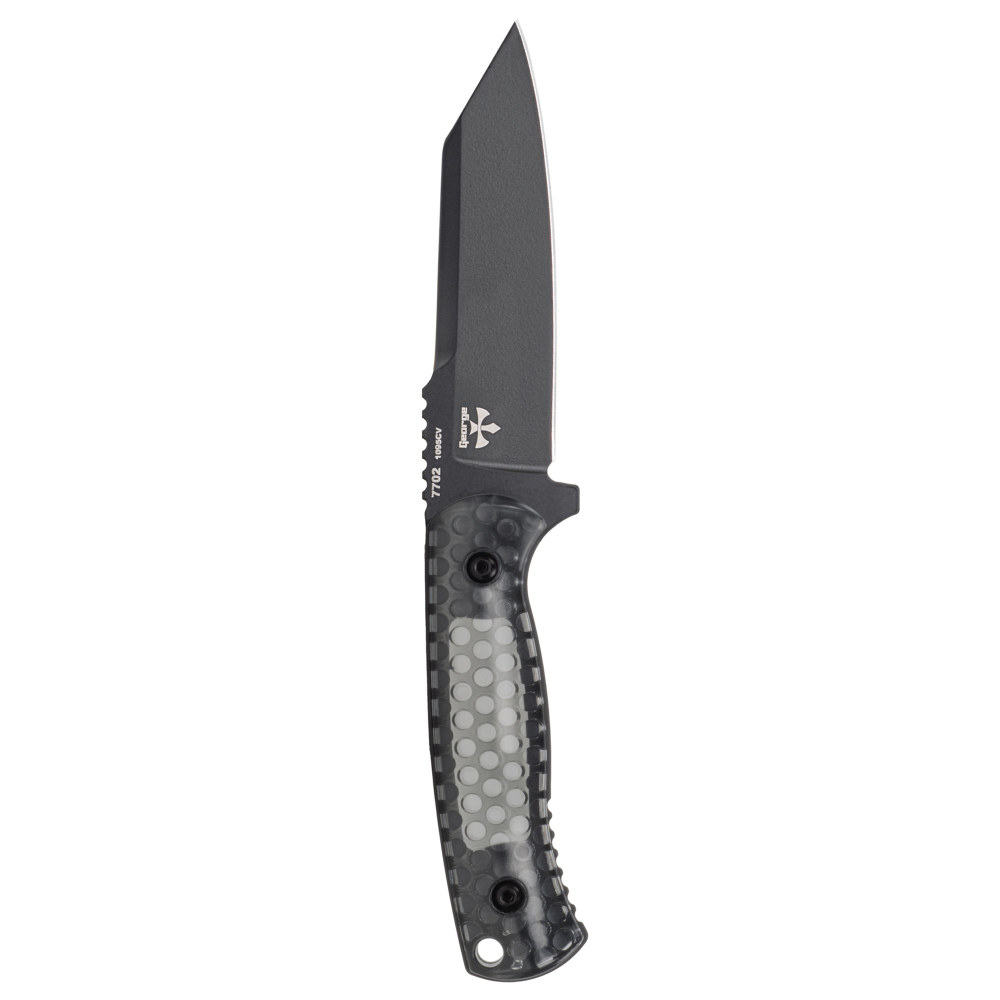 KA-BAR Knives Cool Name, Fixed Blade Knife, 1095 Cro-Van, 4.625" Blade Length, 9.375" Overall Length, Plain Edge, Reverse Tanto, Black Blade, Smoke Polycarbonate Handle, Includes Sheath 7702