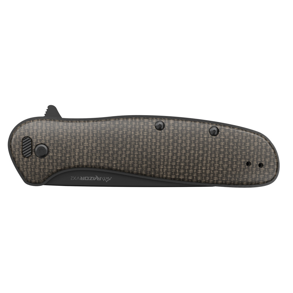 Outdoor Edge Razor VX2, Folding Knife, Plain Edge, 3" Blade Length, 7.3" Overall Length, 420J2 Stainless Steel, Includes (2) Standard Plain Edge and (1) Partially Serrated Blade, Black Oxide Finish, Green G10 Scales, Stainless Steel Frame/Blade Holder, Reversible Deep Carry Clip VX230C-C