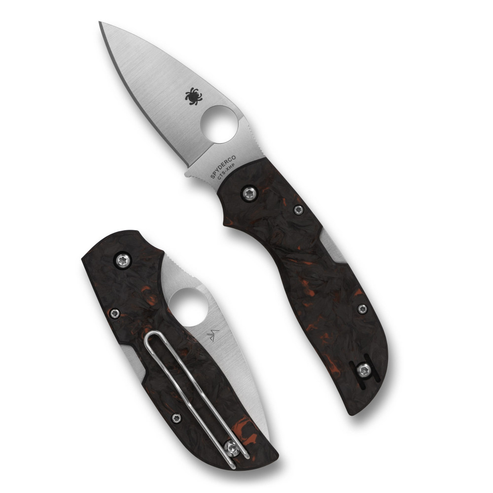 Spyderco Chaparral, Folding Knife, 2.8" Drop Point Blade, 6.4" Overall Length, CTS XHP Blade Steel, Plain Edge, Satin Finish, Silver, Red Fatcarbon Carbon Fiber Grips, Back Lock C152CFRDP