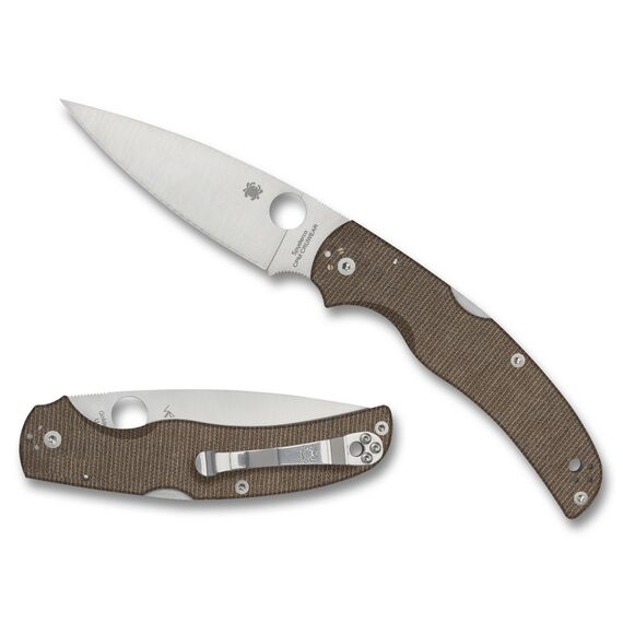 Spyderco NATIVE CHIEF, Folding Knife, 4.08" Drop Point Blade, CPM CRU-WEAR Blade Steel, 9.08" Overall Length, Back Lock, Satin Finish, Silver, Brown Canvas Micarta Handle C244MPCW