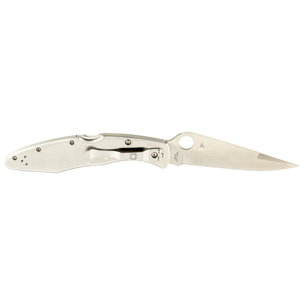 Spyderco Police, 4.125" Folding Knife, Clip Point, Plain Edge, VG10/Satin, Stainless, Circle Thumb Hole/Pocket Clip C07P
