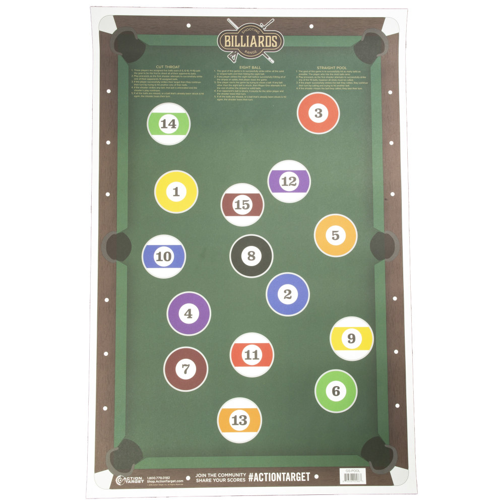 Action Target Billiards Target, Multi Color, 23"x35", 100 Per Box GS-POOL-100