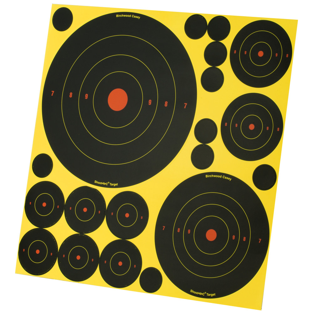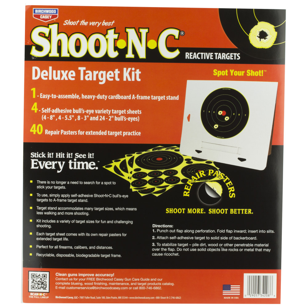 Birchwood Casey Shoot-N-C Target, Deluxe Variety Kit, 40-1" Pasters, 24-2", 8-3", 4-6", 4-8" Bullseye Targets, with Target Stand BC-34208