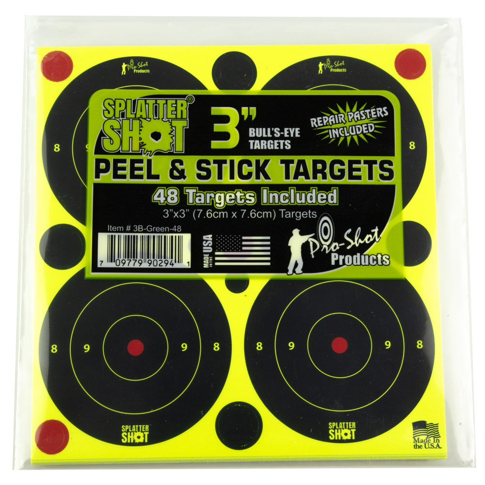 Pro-Shot Products Splatter Shot, 3" Bullseye, Adhesive Target, 48 Pack, Black/Green 3B-GREEN-48