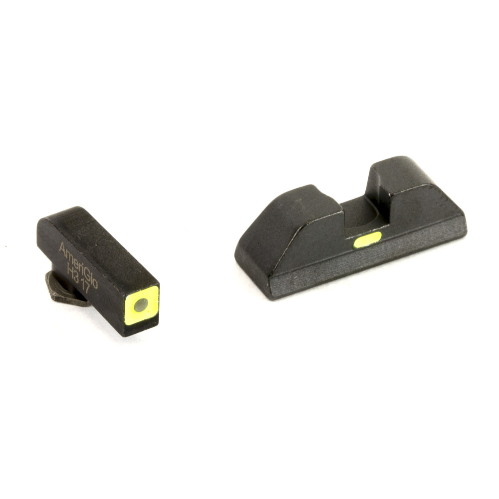 AmeriGlo CAP - Combative Application Pistol, Sight, Front/Rear, Fits Glock 42 and 43, Green Tritium Lime Green LumiLime Square Outline Front with Lime Green LumiLime (Non-Tritium) Rear, Front/Rear GL-605